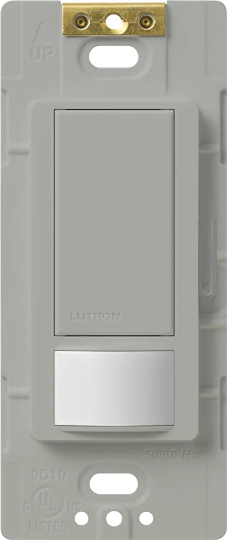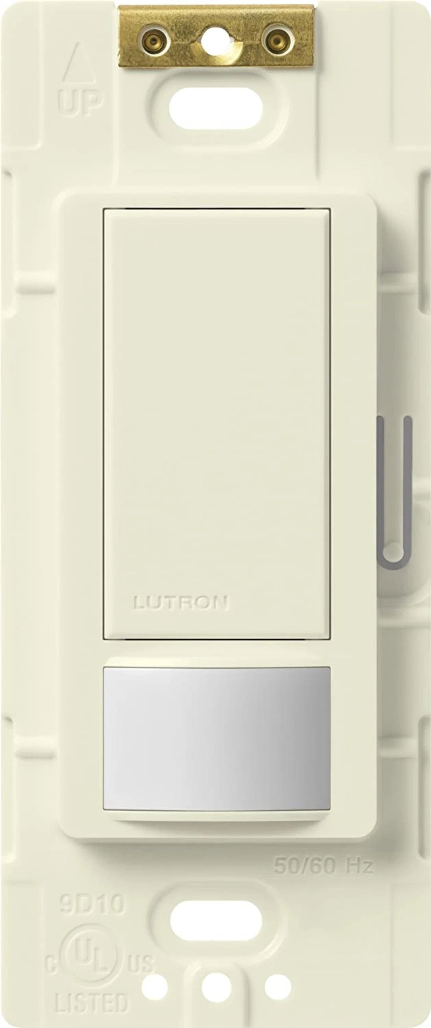 L'interrupteur Lutron Maestro avec détecteur de mouvement (mode absence uniquement) est doté de la technologie de détection de mouvement avancée de Lutron pour allumer et éteindre automatiquement les lumières, ou pour actionner manuellement les lumières avec l'interrupteur tactile. Cet interrupteur avec détecteur d'absence est homologué jusqu'à 6 A pour tout type d'éclairage, 3 A pour un ventilateur ou 3 A pour l'éclairage/ventilateur combiné. Il peut être installé en unipolaire, en va-et-vient avec un interrupteur existant, ou avec des interrupteurs compagnons Maestro (MA-AS/MSC-AS) pour commuter à partir de 9 emplacements maximum. Le capteur infrarouge passif (PIR), couvert par une lentille inviolable, détecte la chaleur des occupants en mouvement et a un champ de vision de 180 degrés (détection de mouvement important sur 900 pieds carrés et de mouvement mineur sur 400 pieds carrés). Équipé d'une détection intelligente de la lumière ambiante (ALD), vous pouvez personnaliser votre capteur pour qu'il détecte la lumière du jour, afin que les lumières ne s'allument pas lorsqu'il y a suffisamment de lumière naturelle dans la pièce. Contrairement à d'autres fabricants, les capteurs Lutron utilisent la technologie de corrélation croisée (XCT) pour détecter également les mouvements fins, comme taper à un bureau ou lire un livre, ce qui garantit que les lumières ne s'éteindront pas par inadvertance lorsque vous êtes encore dans la pièce. Les capteurs Lutron ont également un délai d'attente réglable (1, 5, 15 ou 30 minutes) pour contrôler la durée pendant laquelle les lumières restent allumées après avoir quitté la pièce. Réglez le capteur en mode absence pour répondre aux exigences du Titre 24 : les lumières ne s'allument qu'avec une pression manuelle sur l'interrupteur tactile, mais s'éteignent automatiquement si le capteur ne détecte plus de mouvement. La sensibilité du capteur PIR peut également être modifiée afin qu'il ne détecte que les mouvements plus importants. Disponible en plus de 10 couleurs. S'harmonise parfaitement avec les plaques murales Lutron Claro pour une correspondance de couleur homogène (vendues séparément).