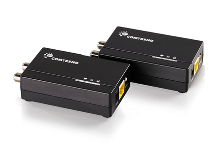 Comtrend’s G.hn Ethernet over Coax Adapter is the first G.hn standards compliant Ethernet over Coax adapter. It allows users to extend a local area network via existing coax cables, and therefore provides an inexpensive option for a fast wired, Internet connection.