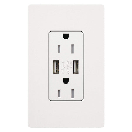 Coordinate Lutron lighting controls and switches with Lutron Claro receptacles to complement your clients' decor. This USB receptacle features 2 USB Type A 2.0 ports with a combined 3.8 Amp output and contains a permanently installed internal tamper-resistant shutter mechanism, capable of resisting insertion of foreign elements into the receptacle openings. Install with screw terminals or push-in connections. Available in 7 Gloss colors and 20 Satin colors, Lutron receptacles become beautiful accessories that let you coordinate and customize the look of each room in any home. Pairs perfectly with Lutron Claro wall plates for consistent color matching (sold separately)