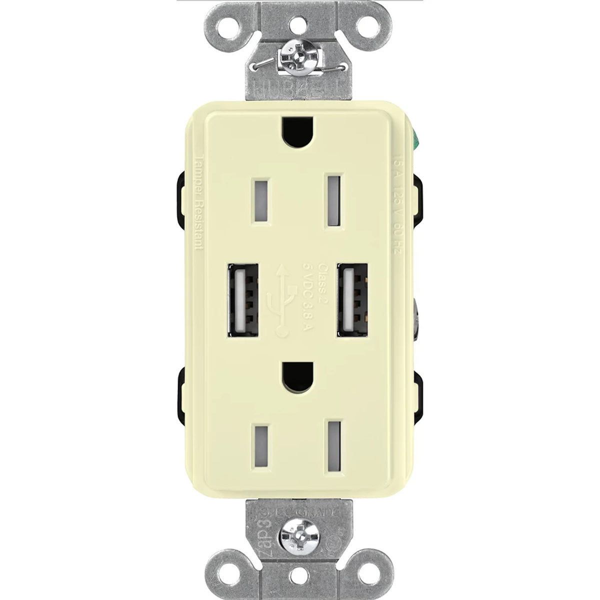 -Includes (1) Tamper resistant receptacle with dual USB Type A 2.0 ports; Gloss finish