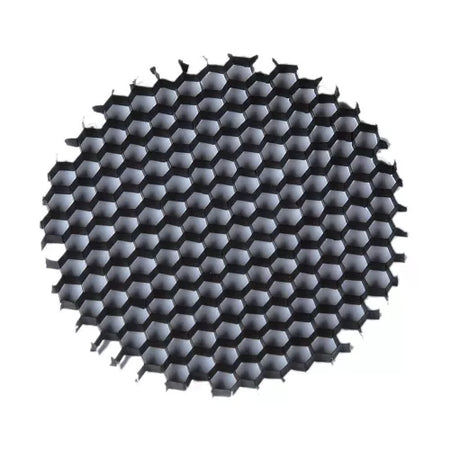 This black anodized aluminum louver is composed of a honeycomb pattern of dividers. It cuts out stray light or glare past about 45º from the beam center. It also hardens the beam edge slightly and accentuates the hot spot. The Hexcell's main use is in controlling glare and works best in fixtures that are in planting beds near walkways or driveways.