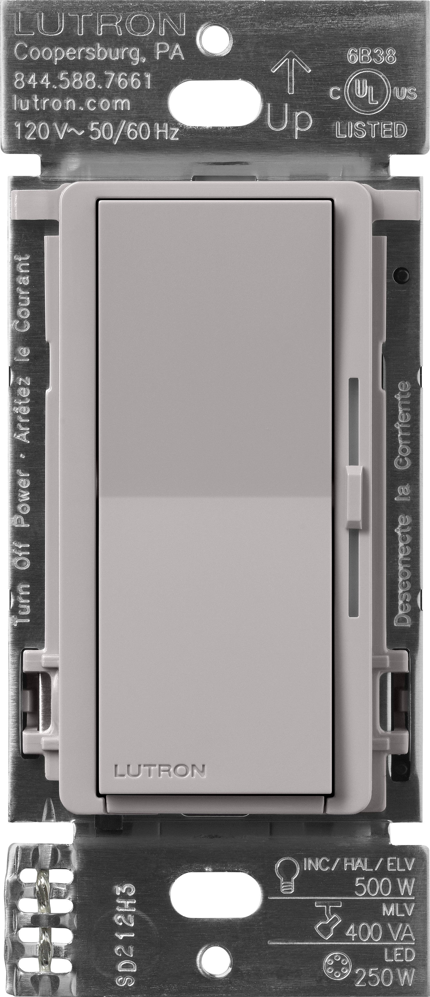 The Lutron Diva smart ELV+ dimmer for Caseta is the perfect dimmer for nearly any residential light source – overhead, undercabinet, toe kick, or track lighting. The Diva smart ELV+ dimmer switch works with up to 250W of dimmable LED, 500W of electronic low-voltage (ELV)/ incandescent/halogen, or 400Watt of magnetic low-voltage (MLV). A neutral wire connection is only required for ELV load types, for other load types such as LED, MLV, and incandescent, a neutral wire connection is optional; a 10-Watt minimum load required for all load types. This dimmer is pre-programmed to reverse phase for ELV, however the dimmer’s phase selectable output can be changed to forward phase for MLV with simple button-press programming directly on the dimmer or the Lutron app. Diva smart dimmers for Caseta systems are designed with the look of Lutron Diva LED+ dimmers and match existing paddle style dimmers and switches for a classic look throughout any home. The Diva smart dimmers feature an on/off paddle style switch and a captive slider to raise/lower lights to a preset light level. The soft glow lightbar indicates the current status and light level of the dimmer, which can also be used to locate the dimmer in the dark. Similar to the Diva smart dimmer, ELV+ Diva smart dimmers have flexible wiring options and can be wired in single pole or multi-location applications. Create a new 3-way or replace an existing one with the Diva smart dimmer switch. Pair a Pico wireless remote to your dimmer switch and mount the Pico to the bracket on almost any surface - no cutting holes or pulling wire required (remote and bracket sold separately). Use Claro smart accessory switches (DVRF-AS) or existing switches for 3-way applications (for 4-way circuits, Claro accessory switches are required). Activate Caseta dimmers to the Lutron Smart Hub (L-BDG2-WH/ L-BDGPRO2-WH ) for advanced features like schedules, timers, scenes, and sync with voice assistants (Alexa, Siri, or Google) to control lights. Available in 6 gloss colors ; coordinating wall plate and other accessories sold separately.