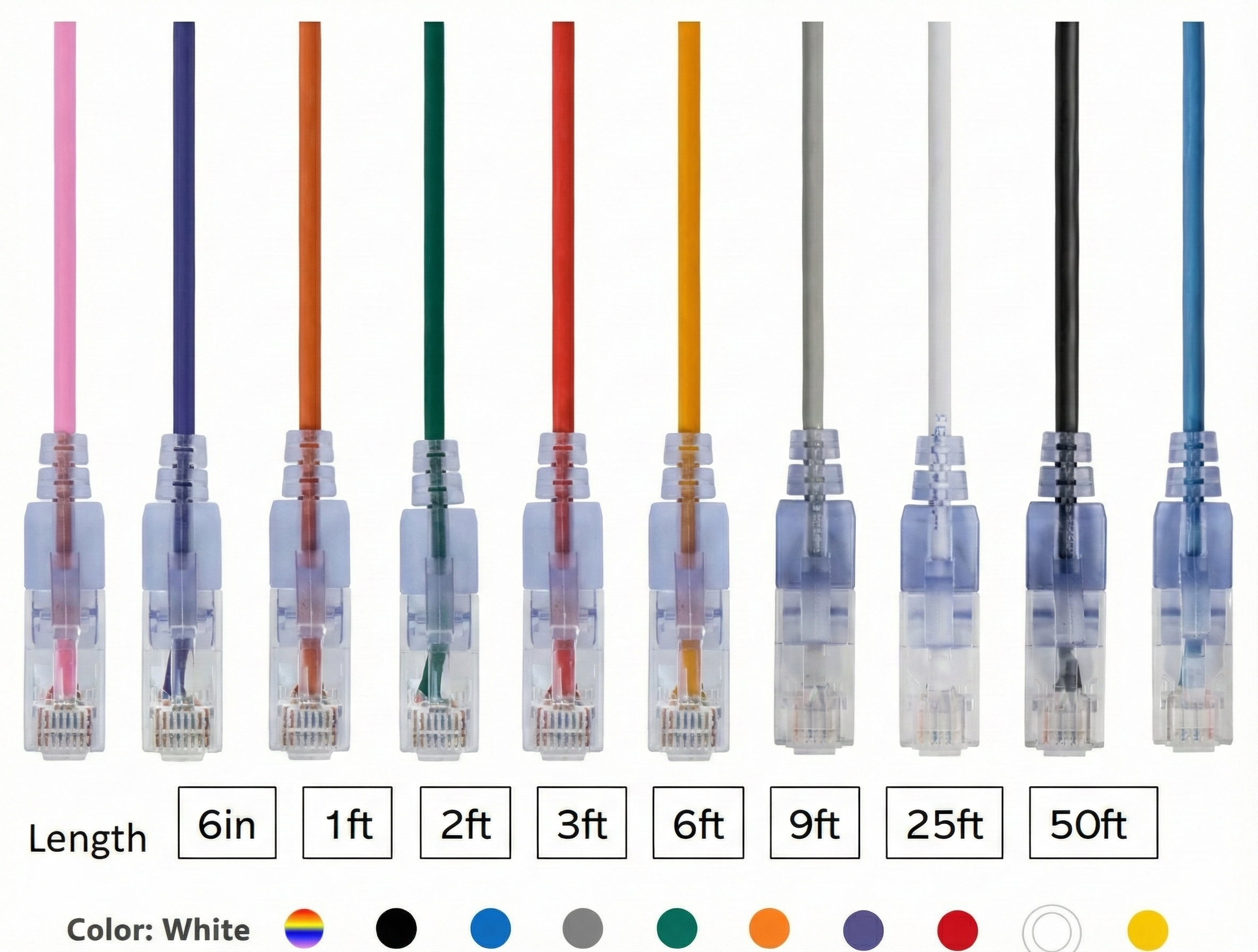 2 ft Slim Cat6A 10G Patch Cable – Rainbow 10-Pack