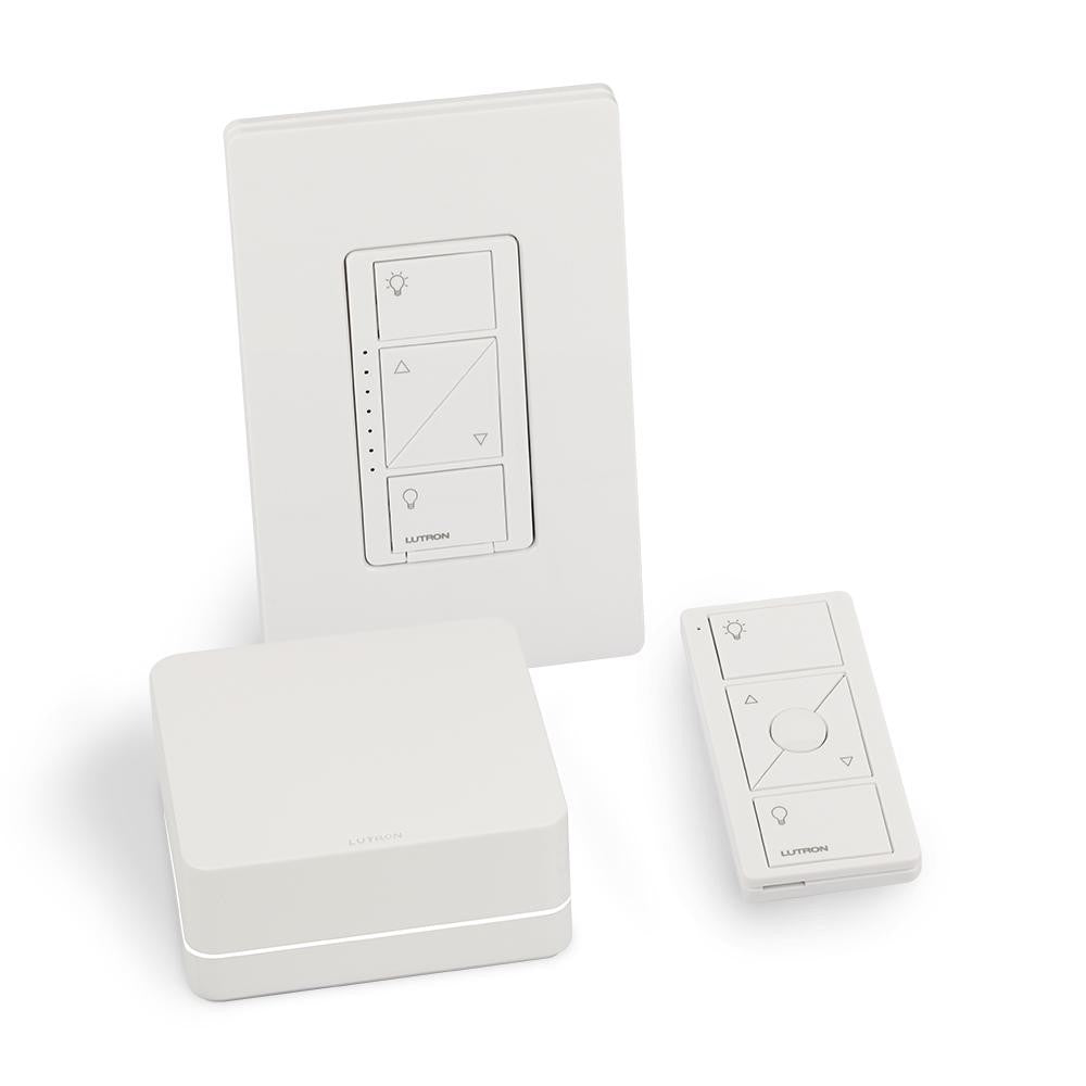 Includes: (1) Caseta smart dimmer switch with wallplate, (1) smart bridge, and (1) Pico remote.