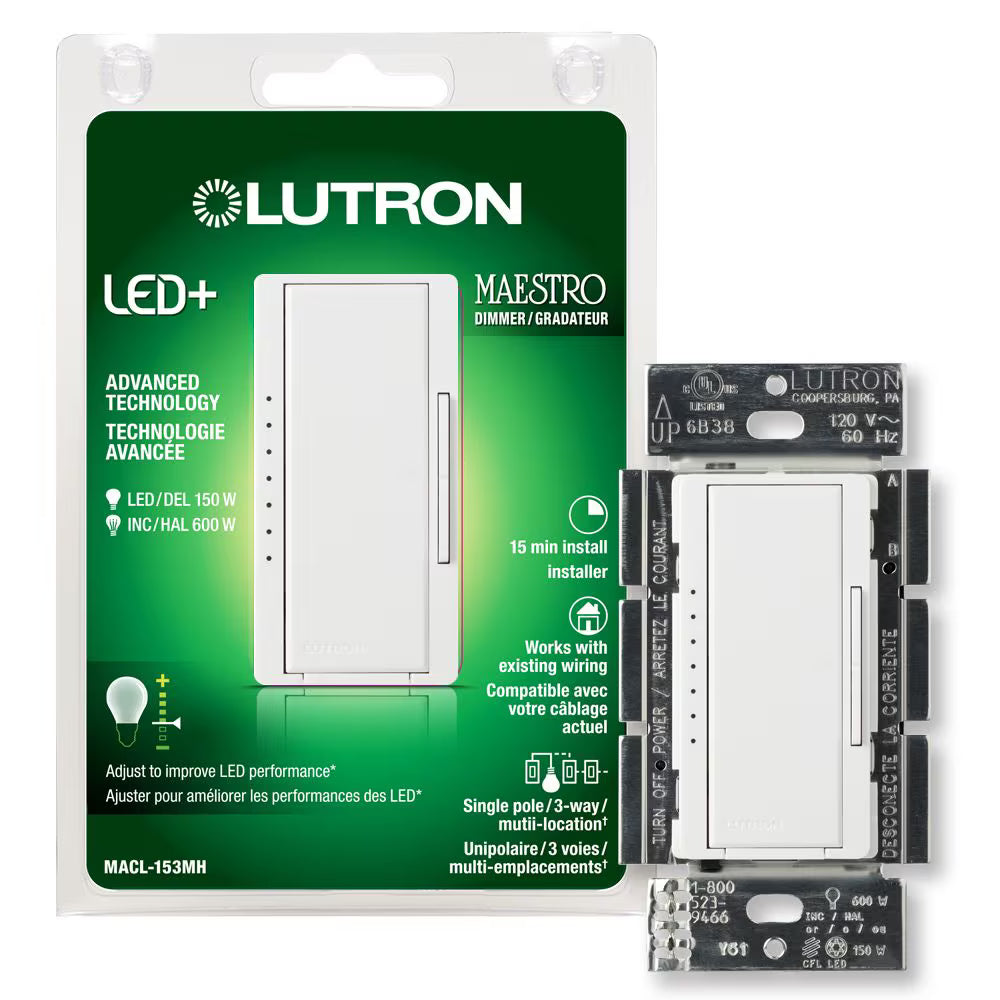 Lutron Maestro LED+ Dimmer Switch - 150W LED (Clamshell) | MACL-153MH-XX-C