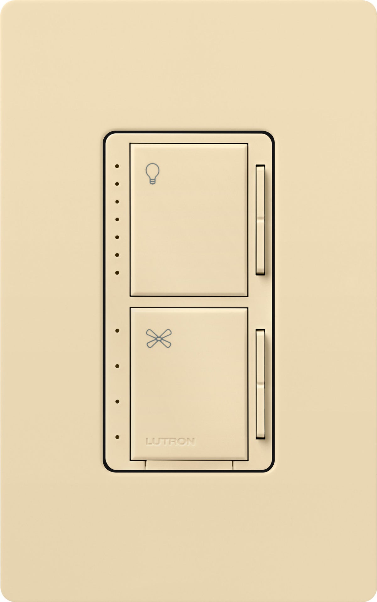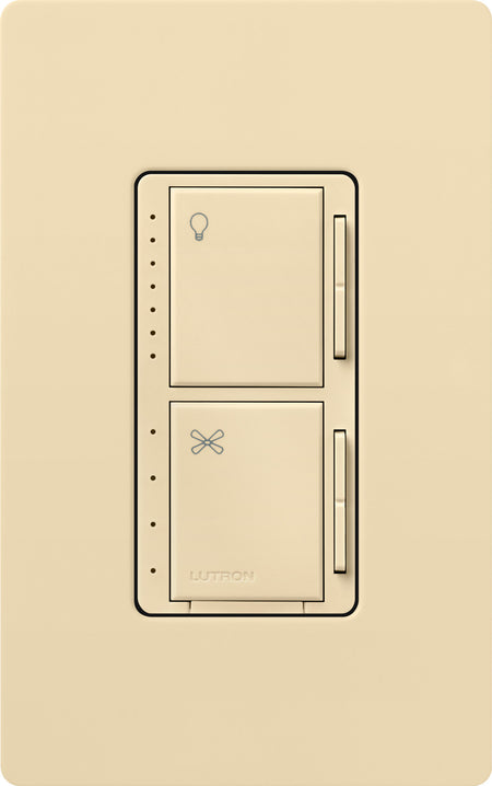 The Lutron Maestro Dual LED+ Dimmer and 4-Speed Fan Control helps you achieve the ideal comfort level for your home. It includes the most advanced technology for superior dimming and adjust the fan speed all from one wall control. The top section is a LED+ Dimmer that works with up to 75W of dimmable LEDs or up to 250W of Incandescent/Halogen bulbs. The bottom section is a 4-speed fan control for a single ceiling paddle fan up to 1.5A. Press the tap switch once to toggle the light or fan ON to a programmed preset, press again to toggle OFF; Double press the tap switch to turn light or fan ON to full intensity/speed. Use the raise/lower button next to the tap switch to dim/brighten lights or increase/decrease fan speed. This Fan/Light control is only available in single pole. Screw terminal and wire lead installation. No neutral or canopy module required. LED+ dimmer portion has easy low-end trim programming. Available in 10+ colors. Pairs perfectly with Lutron Claro wall plates for consistent color matching (sold separately).