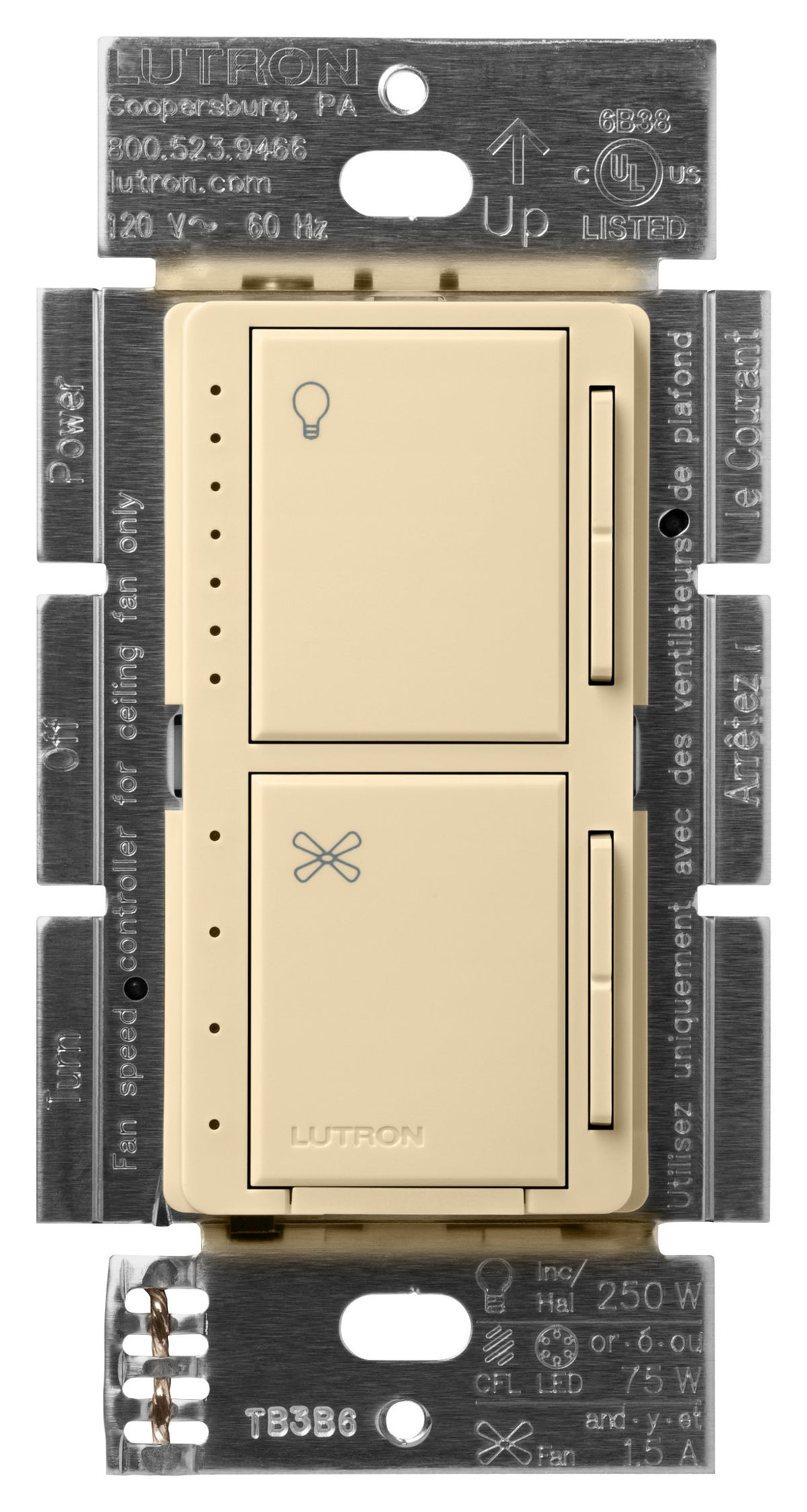 -Rated for 1.5A Ceiling Paddle Fan and up to 75W of dimmable LEDs or 250W of Incandescent/Halogen bulbs