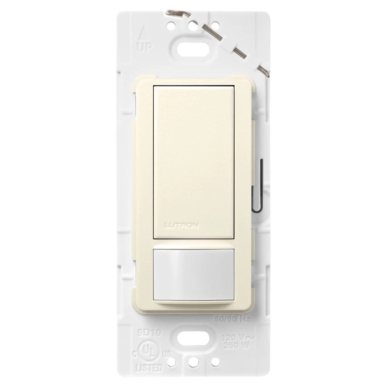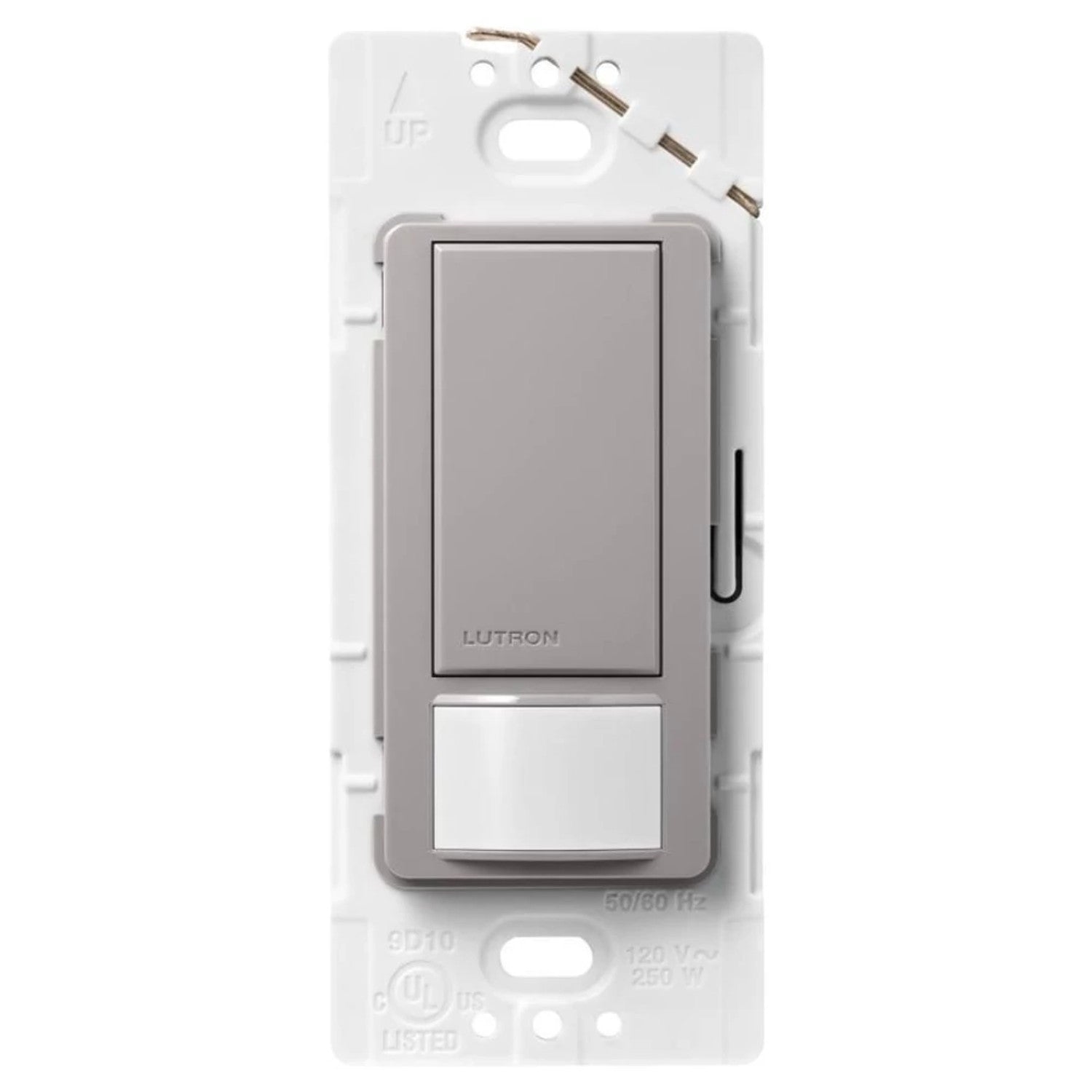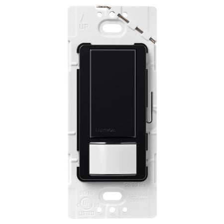 The Lutron Maestro Motion Sensor Switch features Lutron’s advanced motion sensing technology to automatically turn the lights on and off, or manually toggle the lights with the tap switch. The Motion Sensor Switch is rated up to 5A for any lighting type, 3A fan or 3A for combined light/fan. Install in a single pole, 3-way with one existing switch, or with Maestro companion switches (MA-AS/MSC-AS) to switch from up to 9 locations. The passive infrared (PIR) sensor, covered by a tamper resistant lens, detects heat from occupants moving and has a 180-degree field of view (900 sq ft major motion & 400 sq ft minor motion coverage). Equipped with smart ambient light detection (ALD), you can customize your sensor to detect daylight, so lights don't turn on when enough natural light is present in the room. Unlike other manufacturers, Lutron sensors use Cross Correlation Technology (XCT) to also detect fine motion, such as typing at a desk or reading a book – ensuring lights won’t turn off inadvertently when you’re still in the room. Lutron sensors also have an adjustable timeout (1, 5, 15 or 30 minutes) to control how long the lights stay on after leaving the room. Switch the sensor to vacancy mode to meet Title 24 requirements: lights only turn on with a manual press of the tap switch but automatically turn off if the sensor no longer detects motion. The sensitivity of the PIR sensor can also be changed so it only detects larger motion Available in 10+ colors. Pairs perfectly with Lutron Claro wall plates for consistent color matching (sold separately).