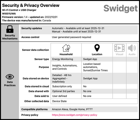 - Wi-Fi Control - Simply snap-in the Wi-Fi Control + USB Type A Insert and take command of your Swidget wired Device using your home's 2.4GHz Wi-Fi network. Enable notifications, set schedules, create powerful automations and monitor your home's energy consumption and costs.
