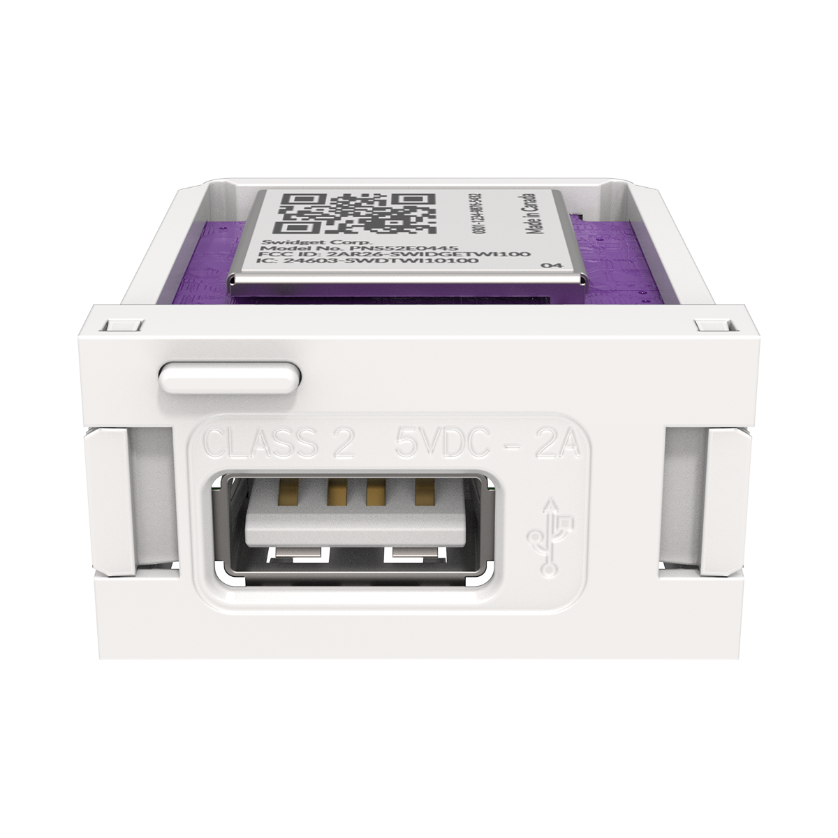 - Conceal your charger - Drop your phone's charging brick with a fast charging, 2A USB Type A port built right into your Swidget's wired Device. Control the USB port through Swidget's App to set schedules and build automations.