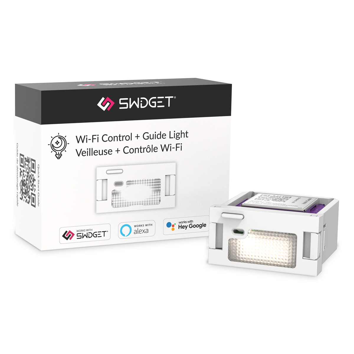 - Wi-Fi Control - Simply snap-in the Wi-Fi Control + Guide Light Insert and take command of your Swidget wired Device using your home's 2.4GHz Wi-Fi network. Enable notifications, set schedules, create powerful automations and monitor your home's energy consumption and costs.