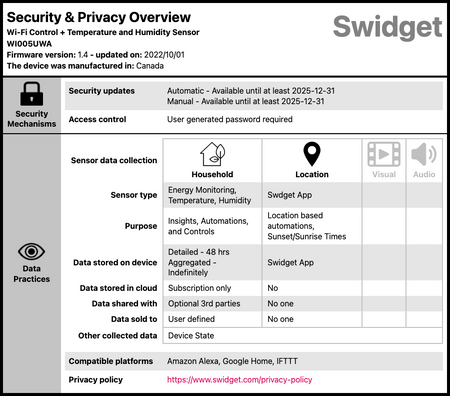 - Wi-Fi Control - Simply snap-in the Wi-Fi Control + Temperature and Humidity Insert and take command of your Swidget wired Device using your home's 2.4GHz Wi-Fi network. Enable notifications, set schedules, create powerful automations and monitor your home's energy consumption and costs.