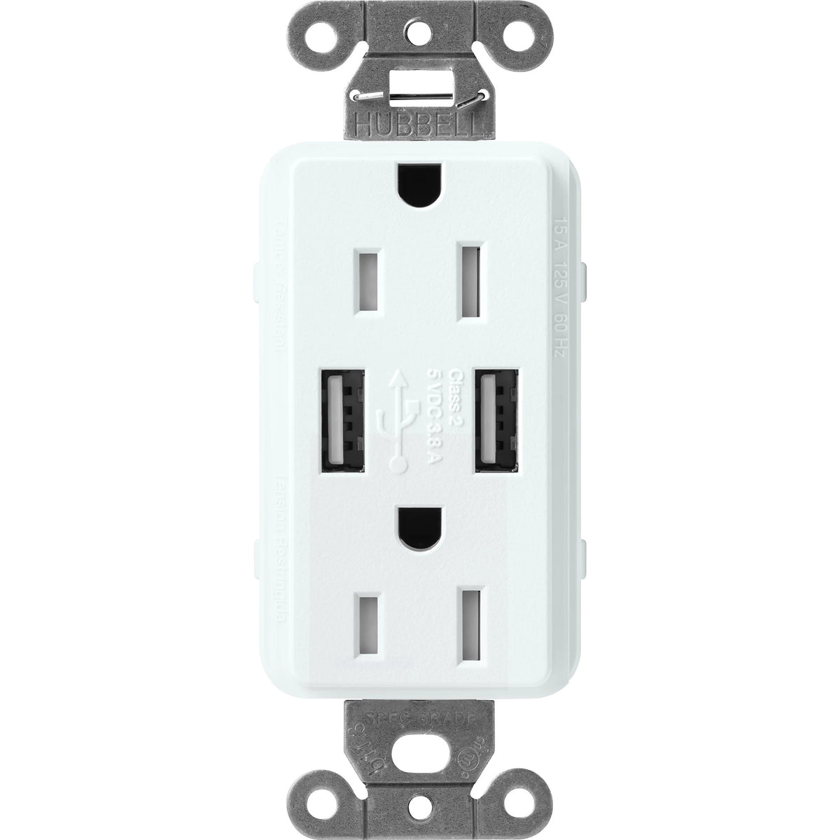 -Includes (1) Tamper resistant receptacle with dual USB Type A 2.0 ports; Satin finish